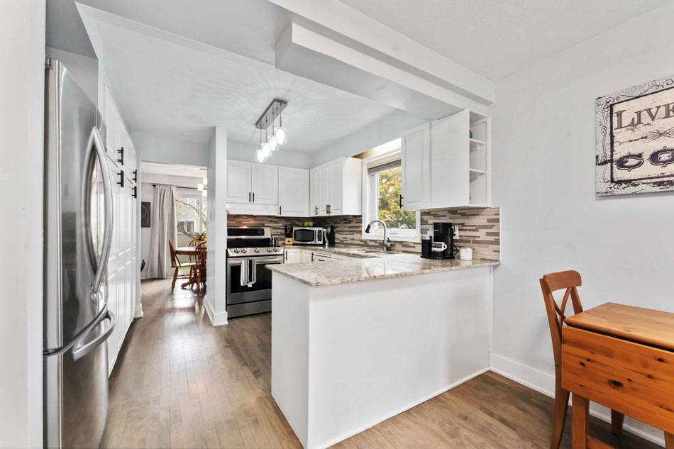Welcome to this beautiful 2-storey home situated in the heart of Chapel Hill, across from Greenspace and the ravine. Filled with natural light thanks to it’s sunny south-facing exposure, this home also offers a fully fenced rear yard – perfect for kids, pets, and outdoor enjoyment. The well-designed main level features maple hardwood flooring and an updated kitchen with granite countertops, ample cabinetry, and an inviting eating area. The layout flows seamlessly to the dining room and living room, highlighted by a cozy wood-burning fireplace. Upstairs, the second level offers laminate flooring throughout and a spacious primary bedroom complete with walk-in closet, and private ensuite. Two additional bedrooms and a 4-piece main bath complete this level. The finished lower level expands your living space with a flexible family room and a separate laundry/utility room. Walking distance to parks and schools, close to transit routes, trails in the NCC conservation land, minutes to amenities, and quick access to downtown. A wonderful opportunity to make this home your own-book your showing today!